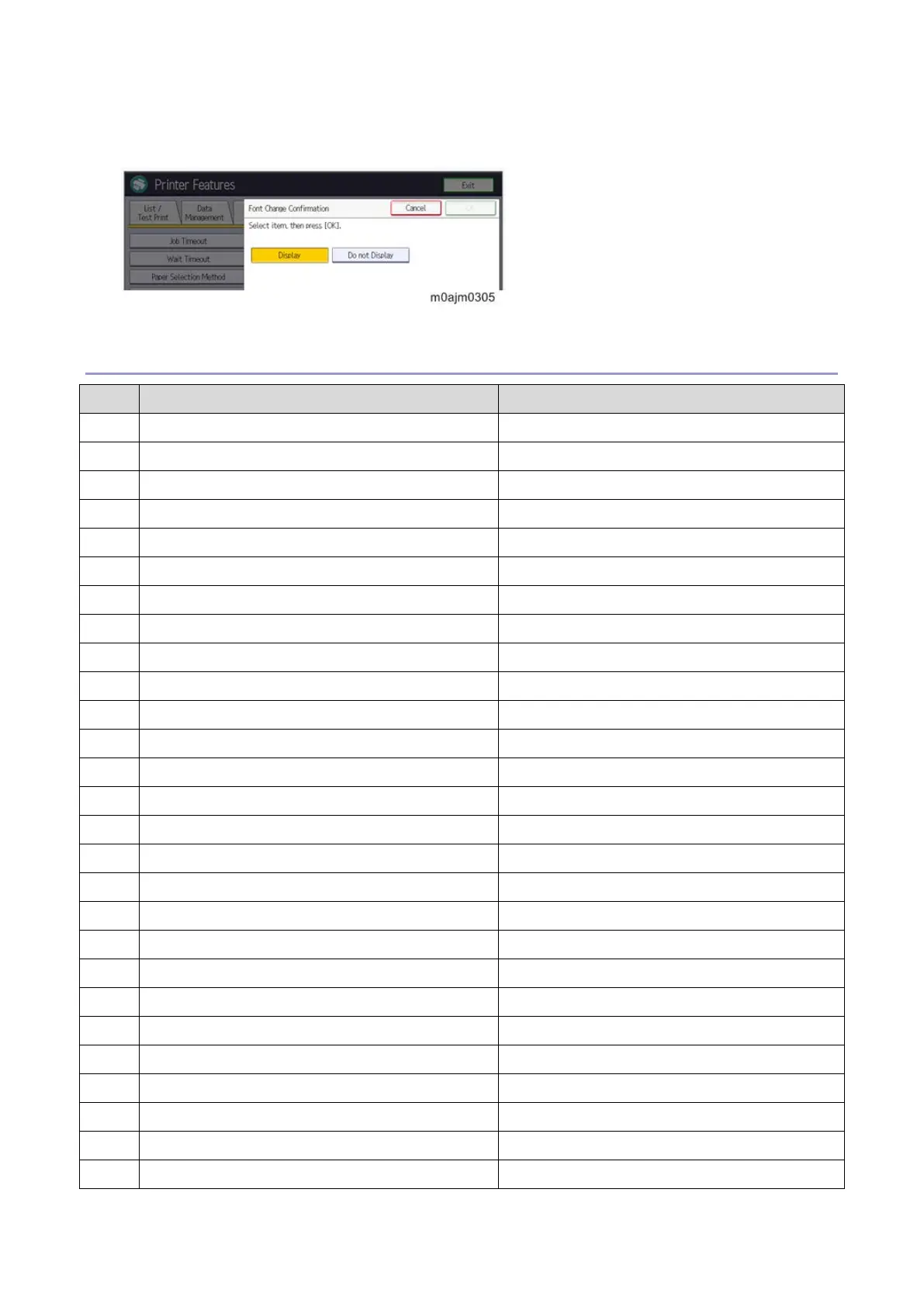 User Tools icon on Home screen > Machine Features > Printer Features > PS Menu > Font Change