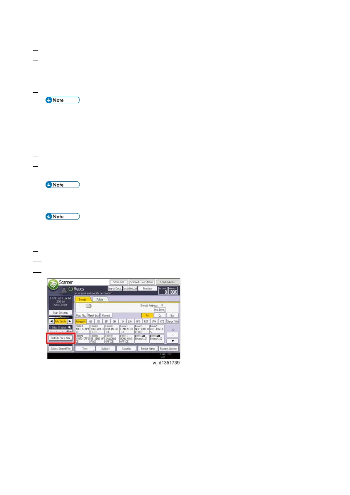 11. Press [Send File Type / Name] on the [Scanner] screen.