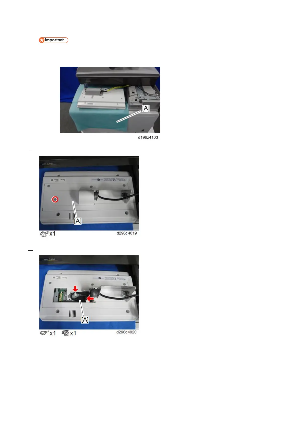 Spread a cloth or service mat [A] on the paper exit tray to protect the display. Place the operation