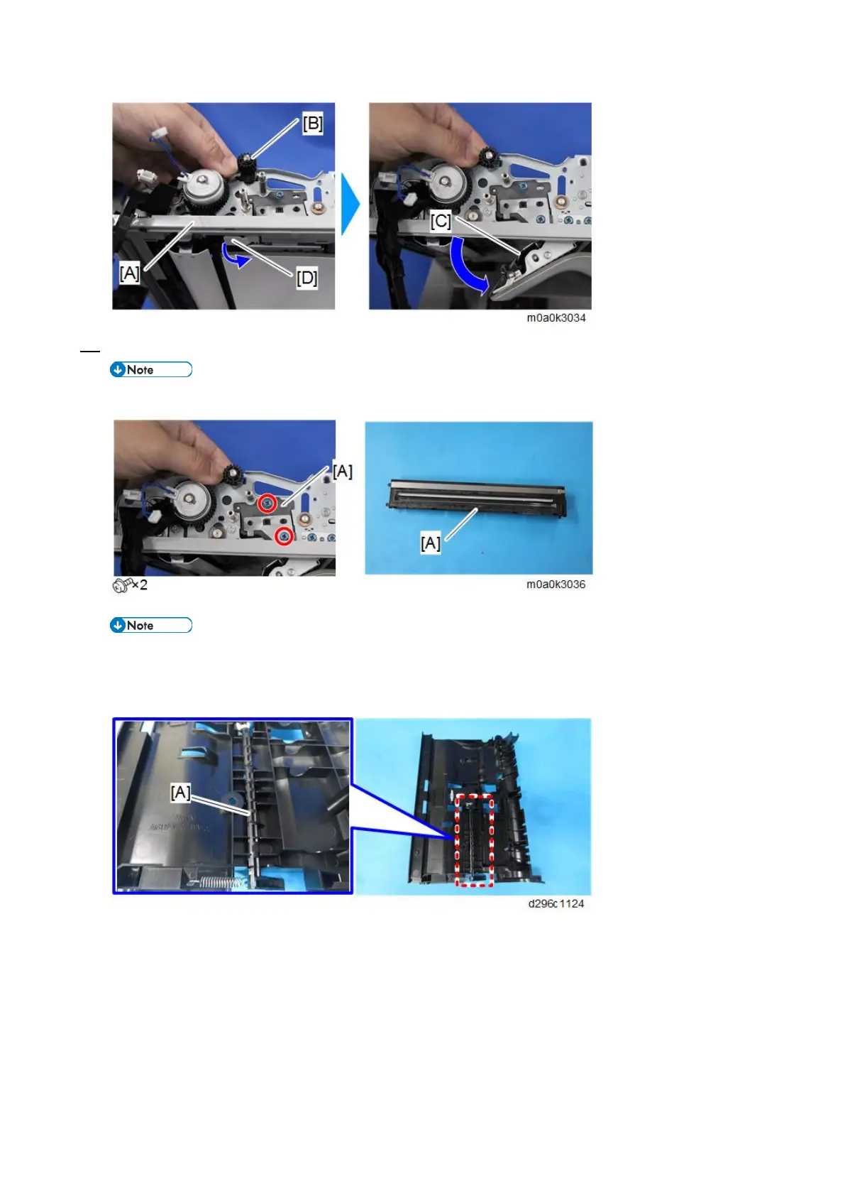 When reattaching the ADF inner cover, make sure that the shaft [A] fits into the groove (this is the shaft of