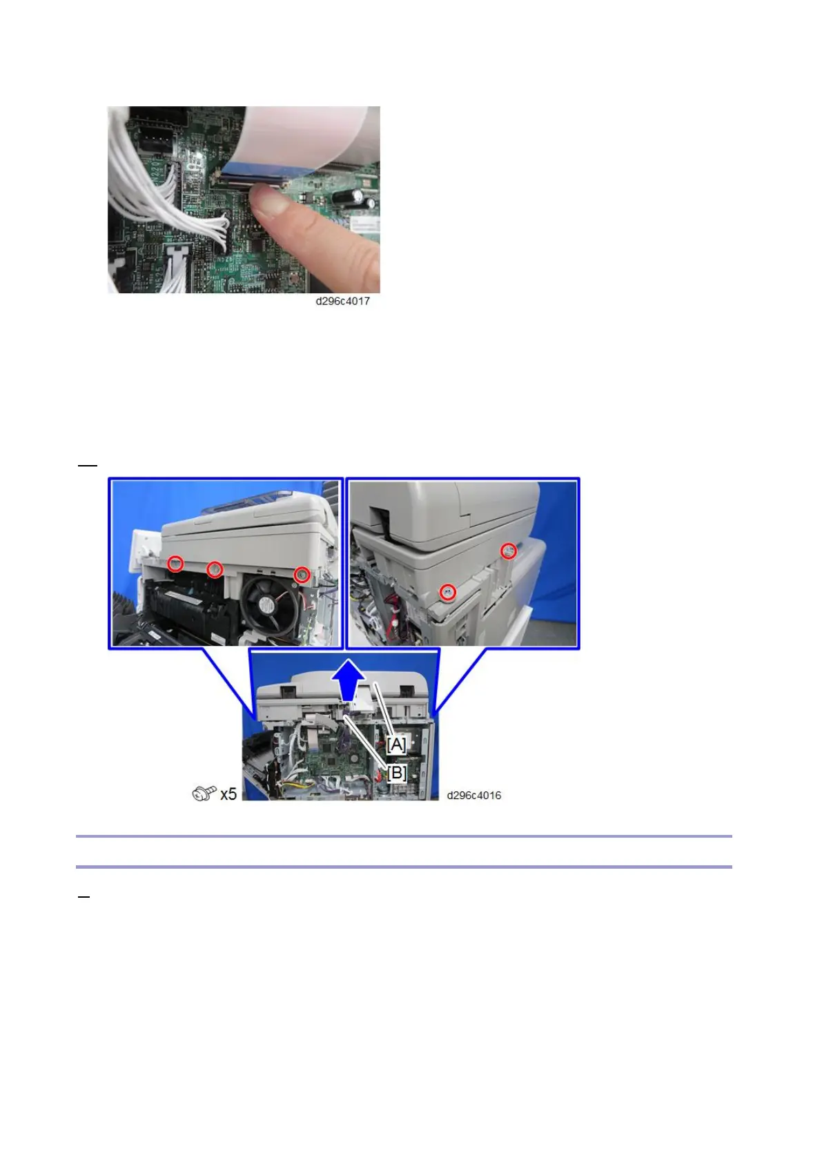 Remove the scanner unit [B] with the ADF [A].