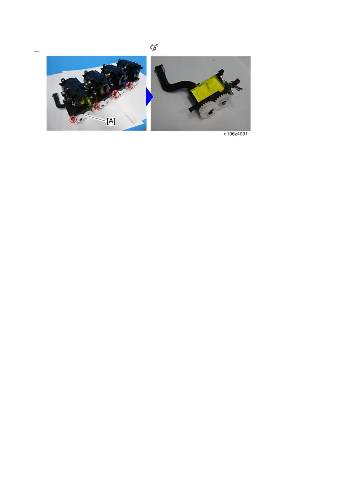 5. Remove the toner transport section [A]. ( × 1)