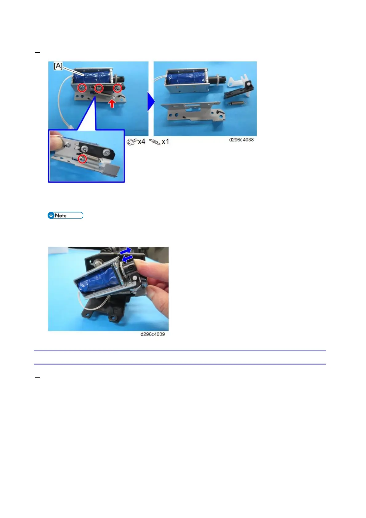 3. Remove the bracket from the exit junction gate solenoid [A].