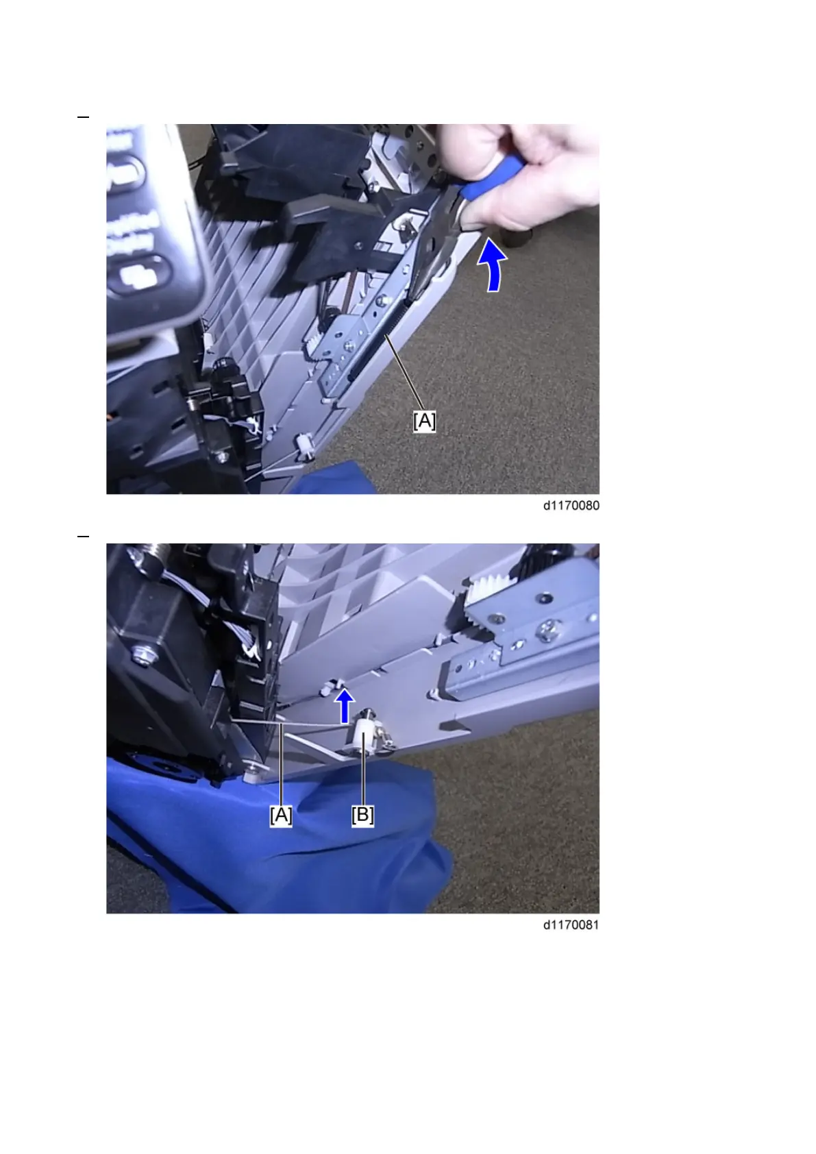 7. Release the tension wire [A] from the roller [B].