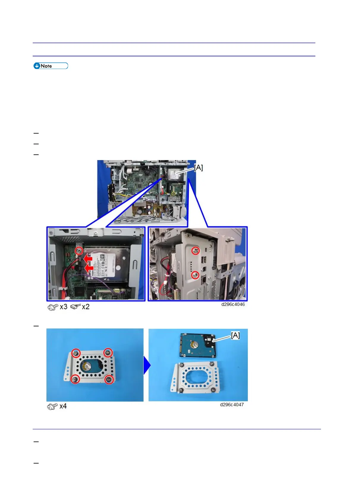 • Before replacing the HDD, copy the address book data to an SD card with SP5-846-051 if there is no