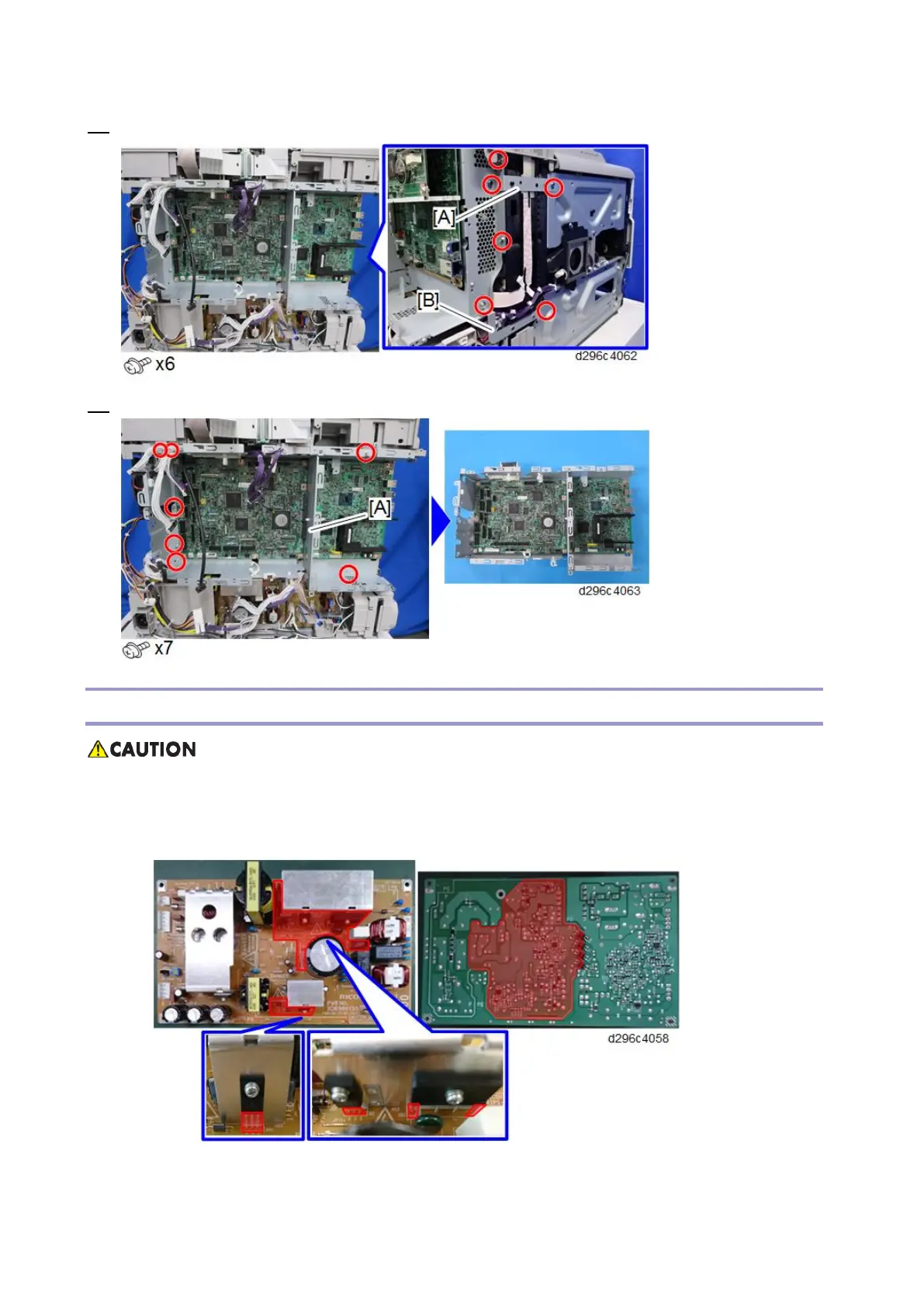 12. Remove the brackets ([A] and [B]), and two screws from the right side of the controller box.