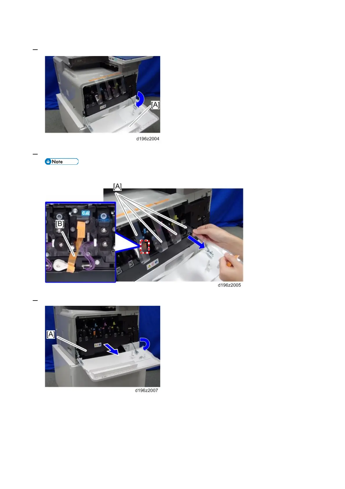 7. Remove the waste toner bottle [A].