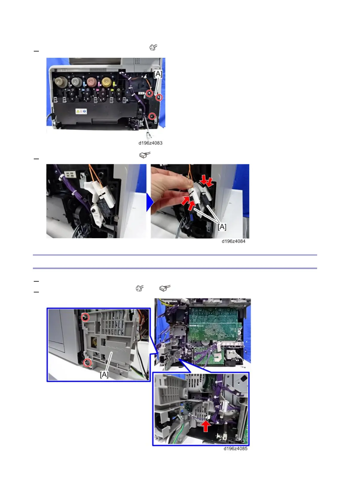 4. Remove the interlock switch cover [A]. ( × 3)