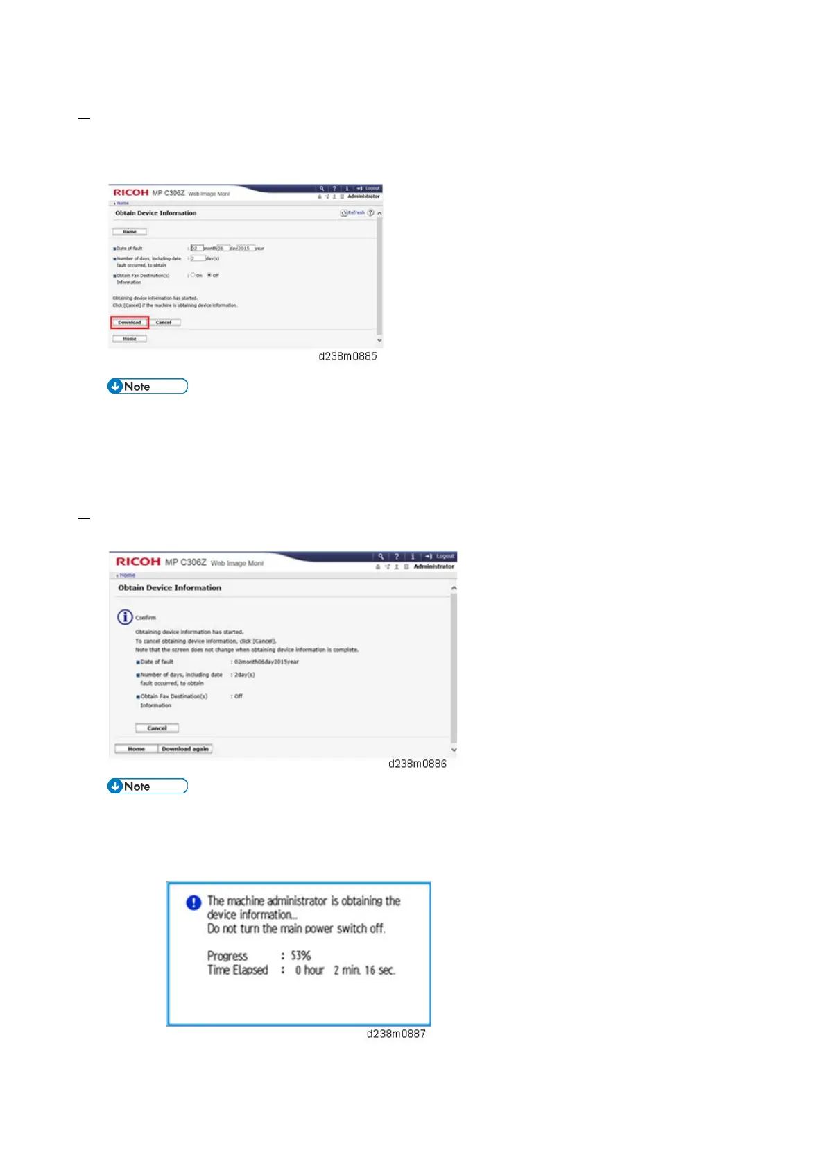 • Operation panel when downloading the logs: