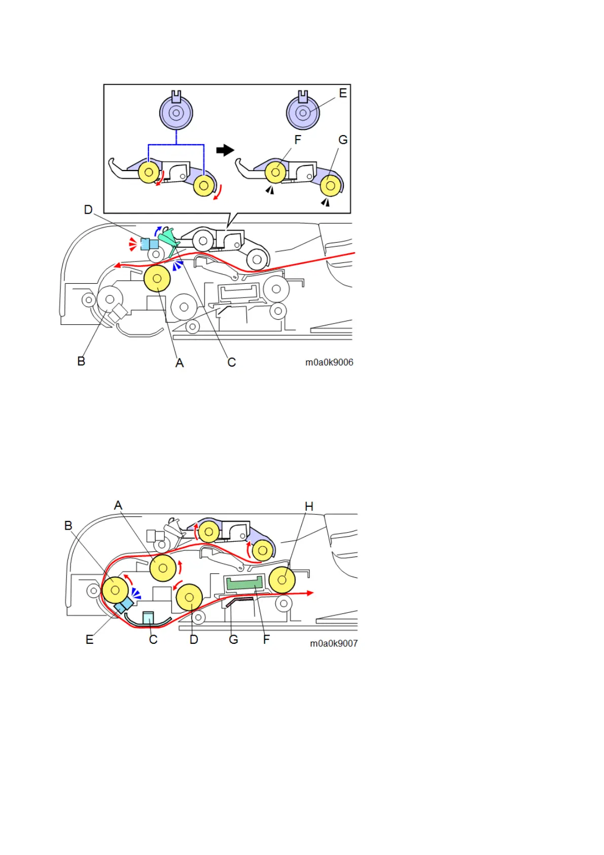 When the original passes through the ADF entrance roller [A], the feed sensor [B] is detected OFF. If the next