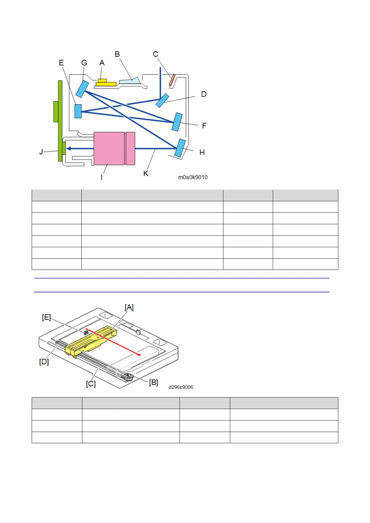 [A] Scanner carriage [D] Scanner drive belt