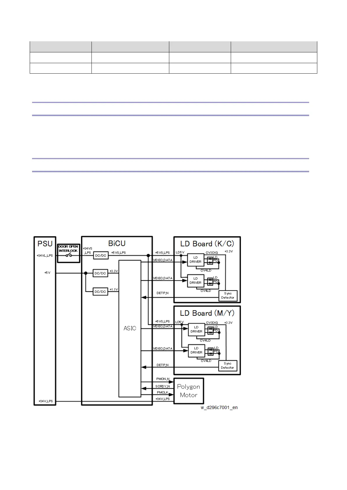 The +5VS_LPS are supplied to the two LD boards respectively. A safety switch turns off when the front cover