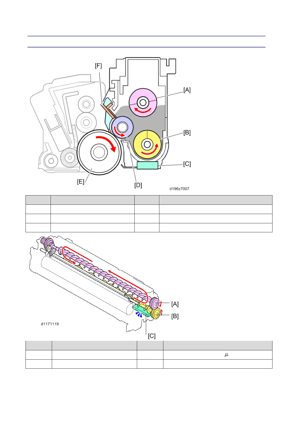 [A] Toner Transport Coil (Upper) [C] Toner Density Sensor (mu ( ) Sensor)