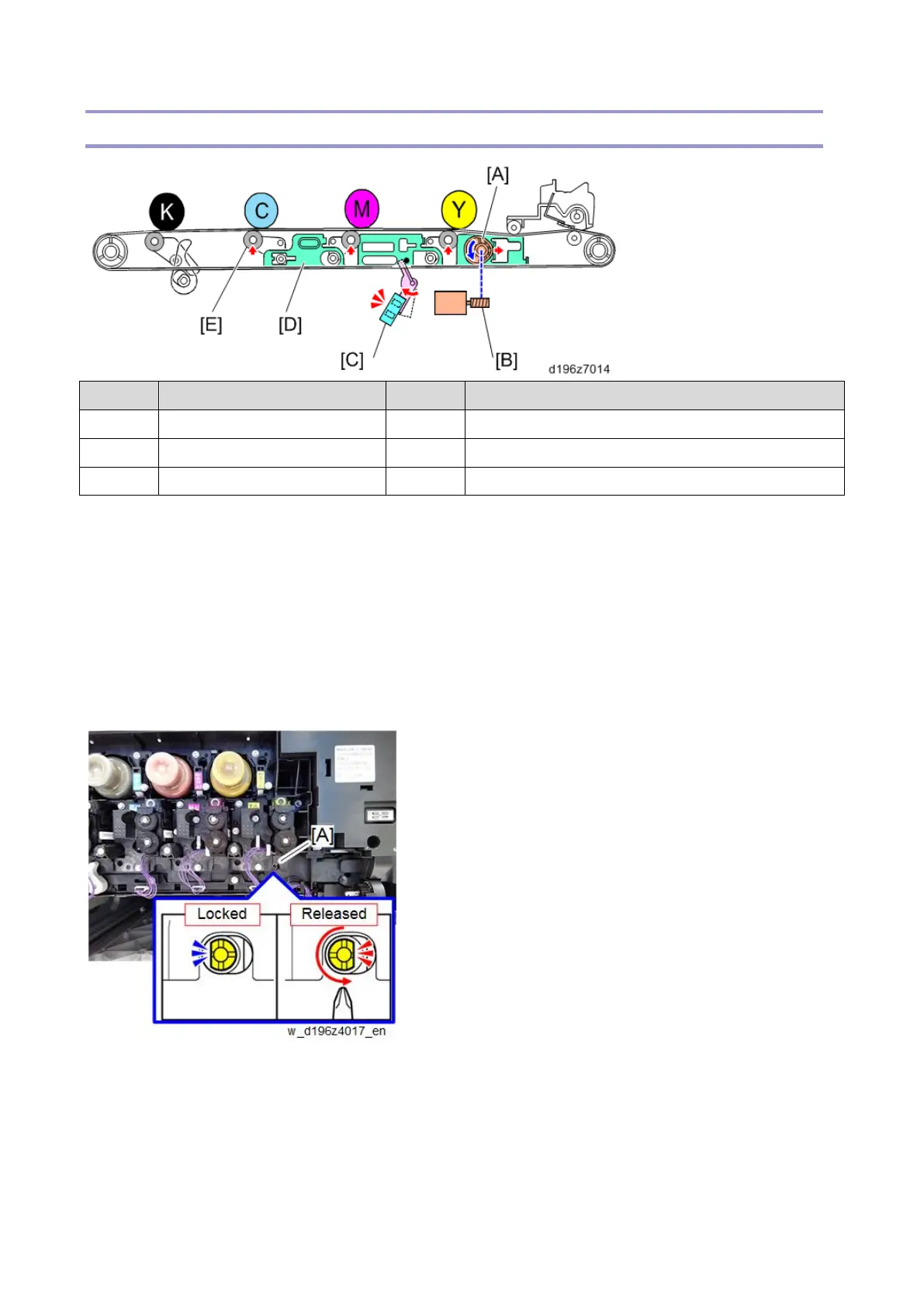 follows. The ITB will move away from the CMY drums. To do this, turn the ITB contact cam's screw to the left