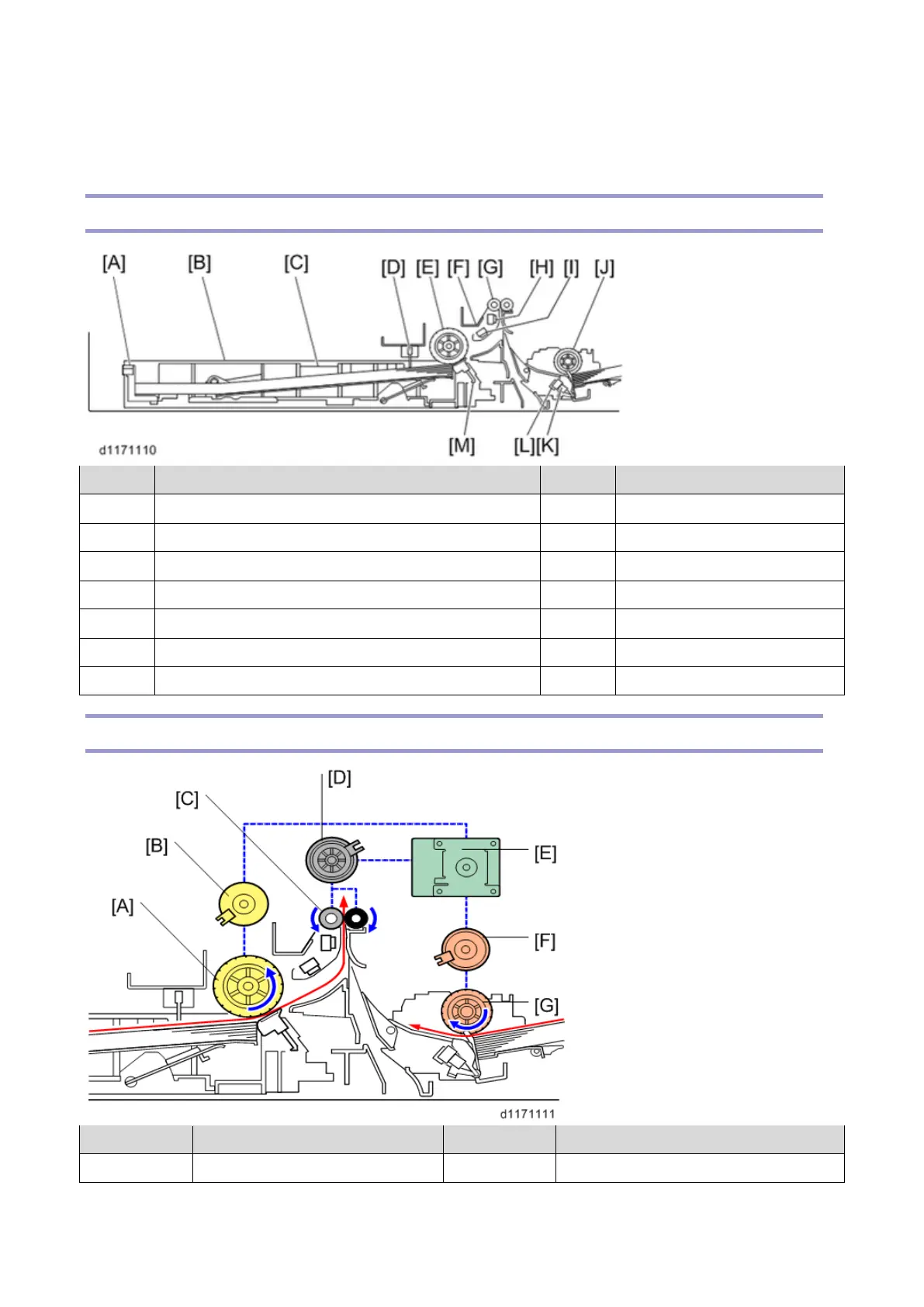 [A] Paper Feed Roller [E] Paper Transport Motor