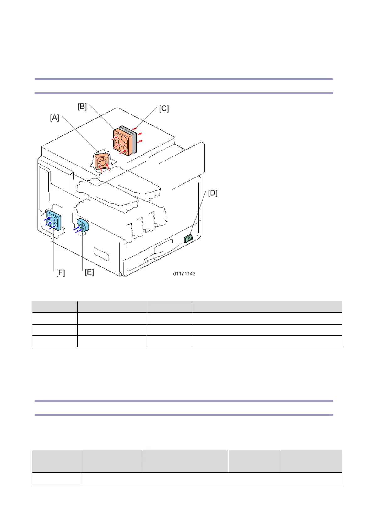 The machine has four fans [A] [B] [E] [F] to ventilate the interior of the machine. There is a