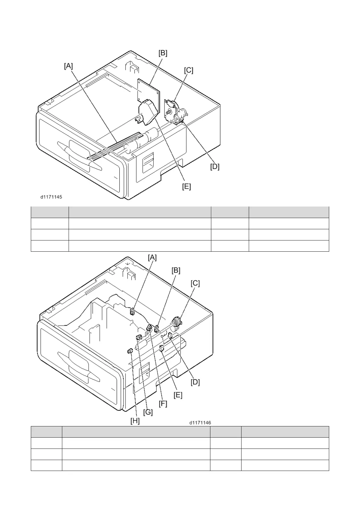 [A] Tray Bottom Plate Lift Sensor [E] Tray Set Switch