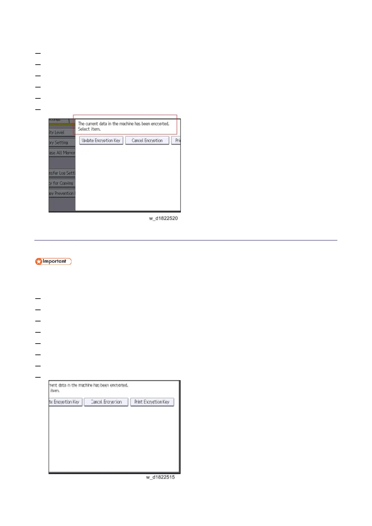 The encryption key is required for data recovery if the machine malfunctions. Be sure to store the
