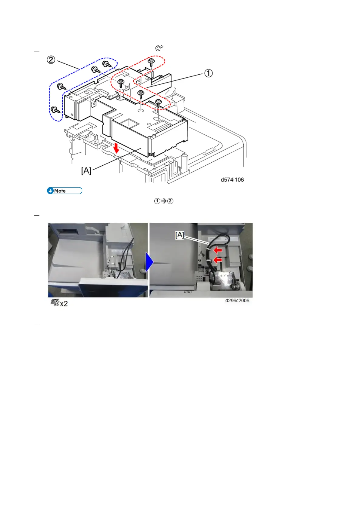 6. Attach the 1-bin tray unit [A]. (M3x10: 4 screw, and blue screw [D])