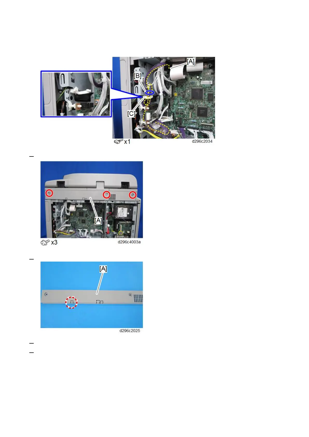 7. Cut out the hole for the counter device cable to pass through the scanner rear cover [A].