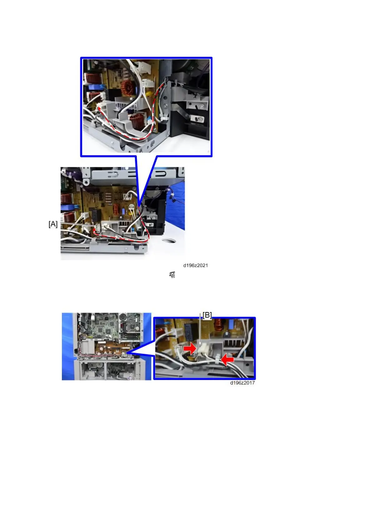 Only when the heater for optional paper feed tray will not be installed, store the connector [B] in the