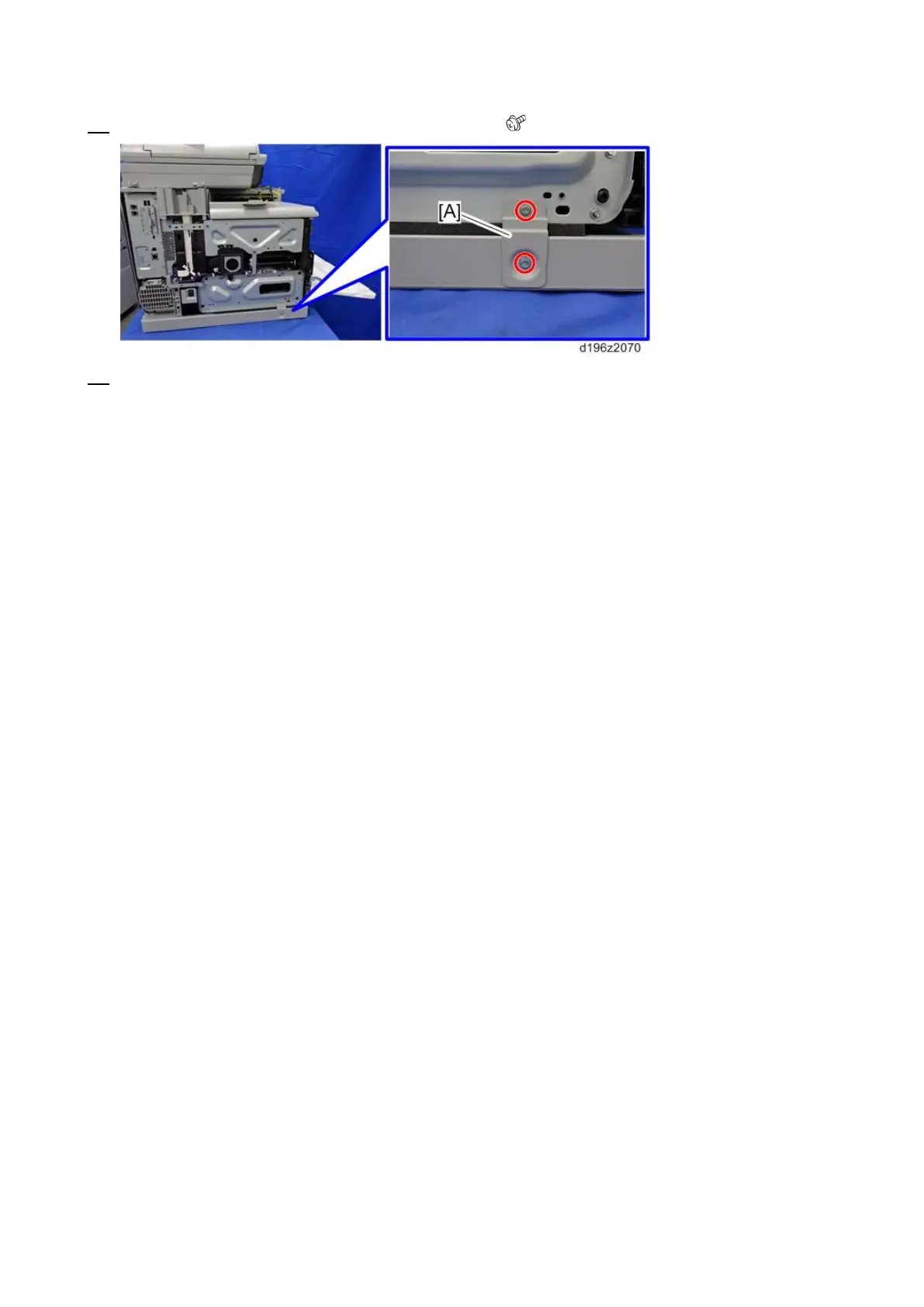 13. Attach the securing bracket [A] at the left of the machine. ( × 2)