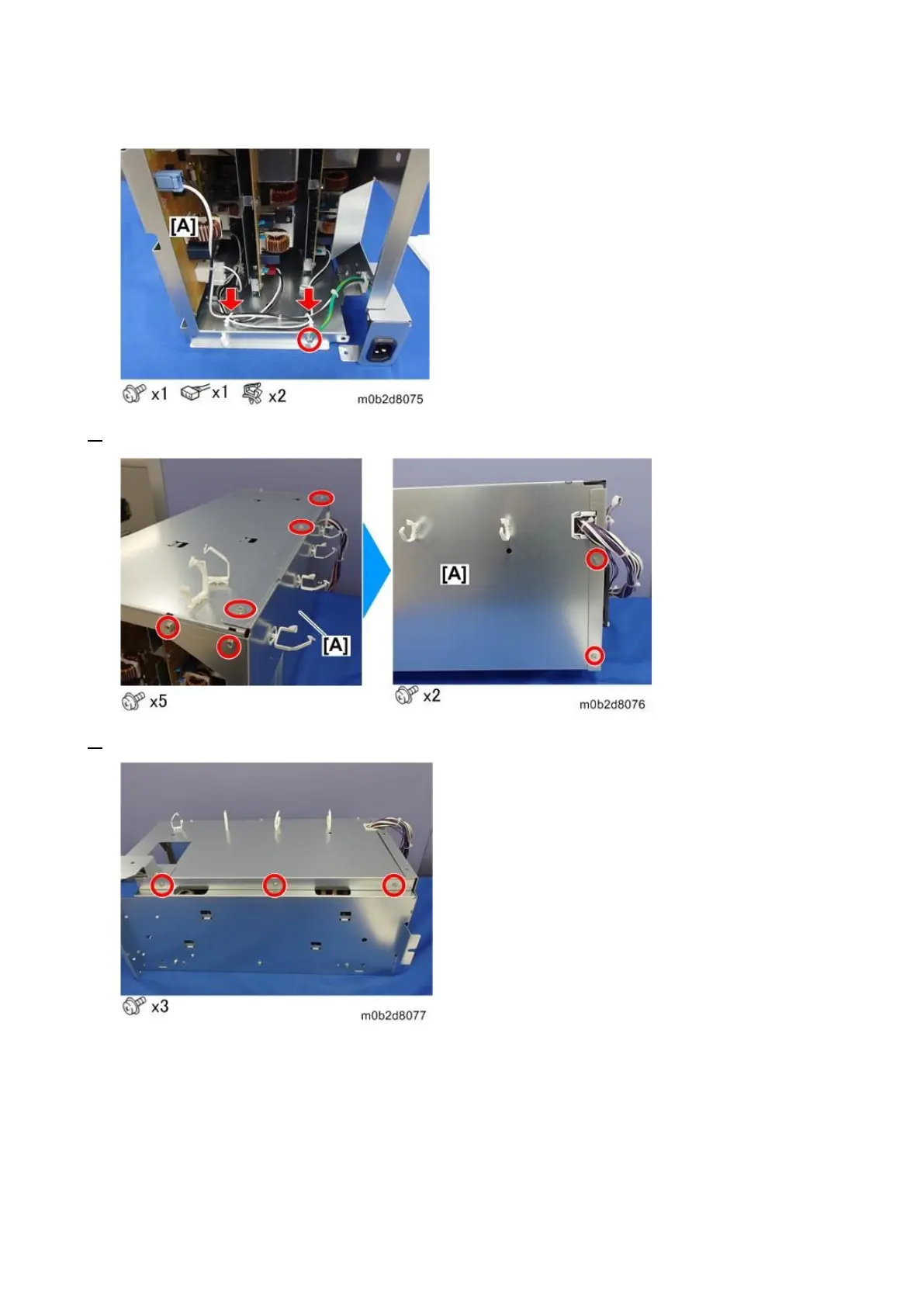 5. Lay down the PSU box [A] to remove the screws on the lower side.