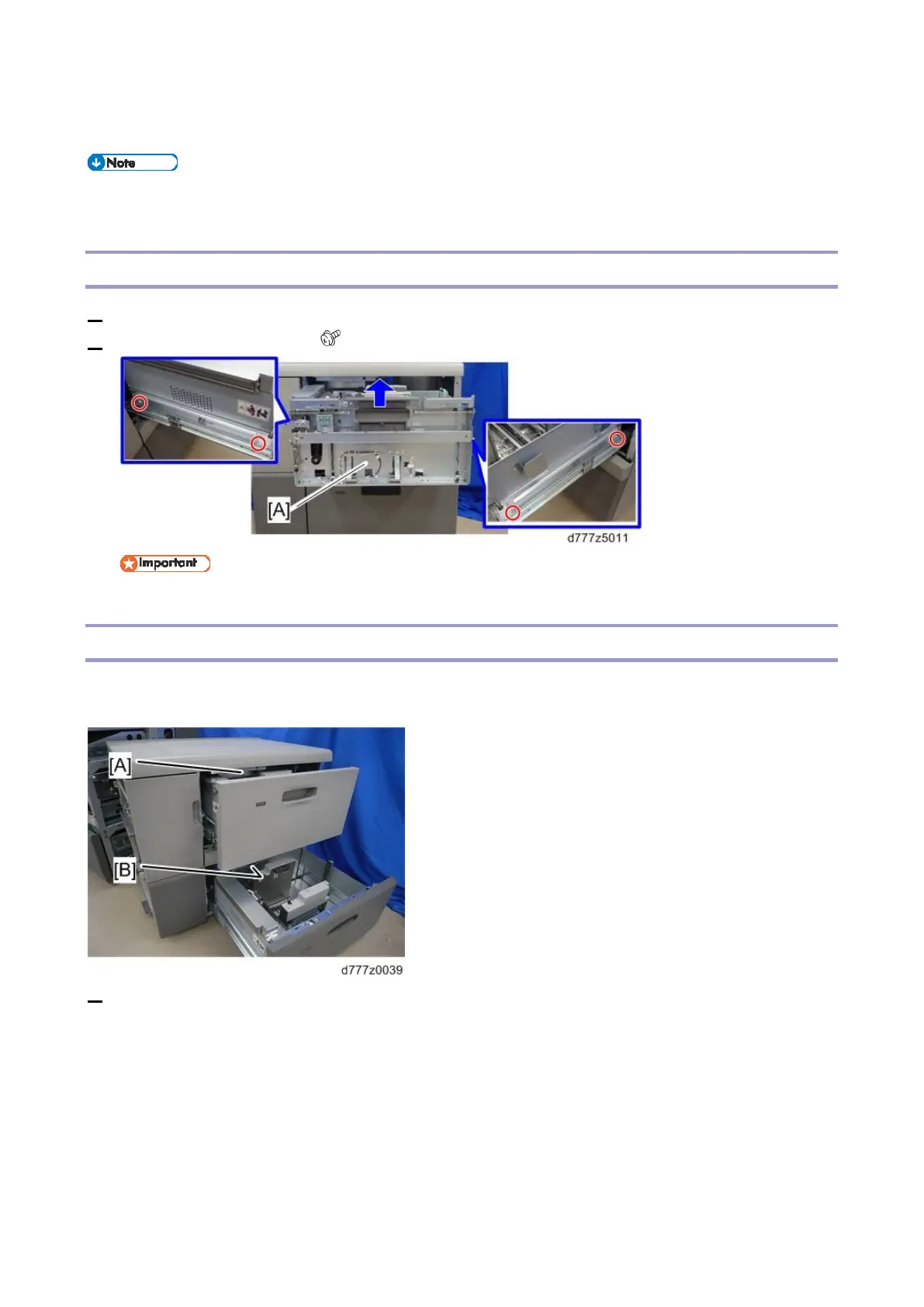 2. Remove the paper tray [A] ( x4)