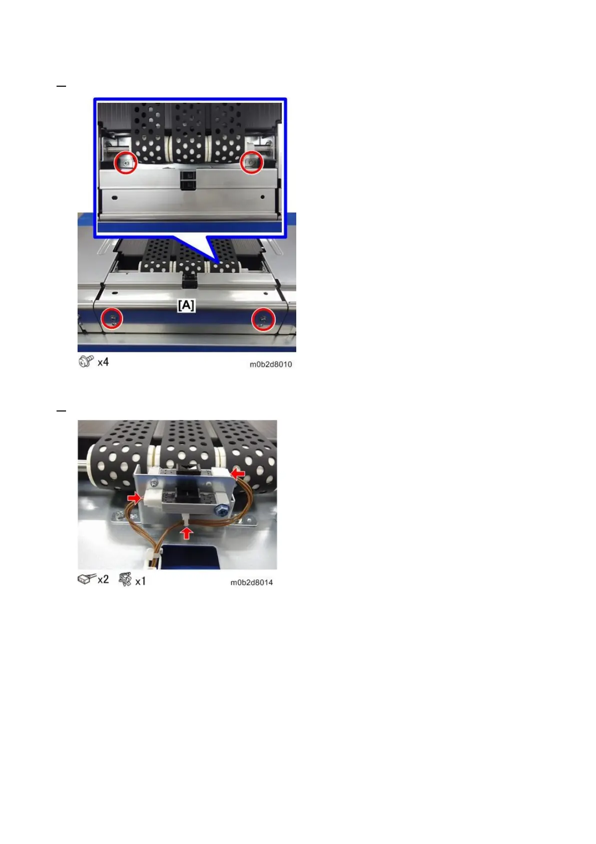 3. Release the connectors and clamps of paper end sensors 1 and 2.