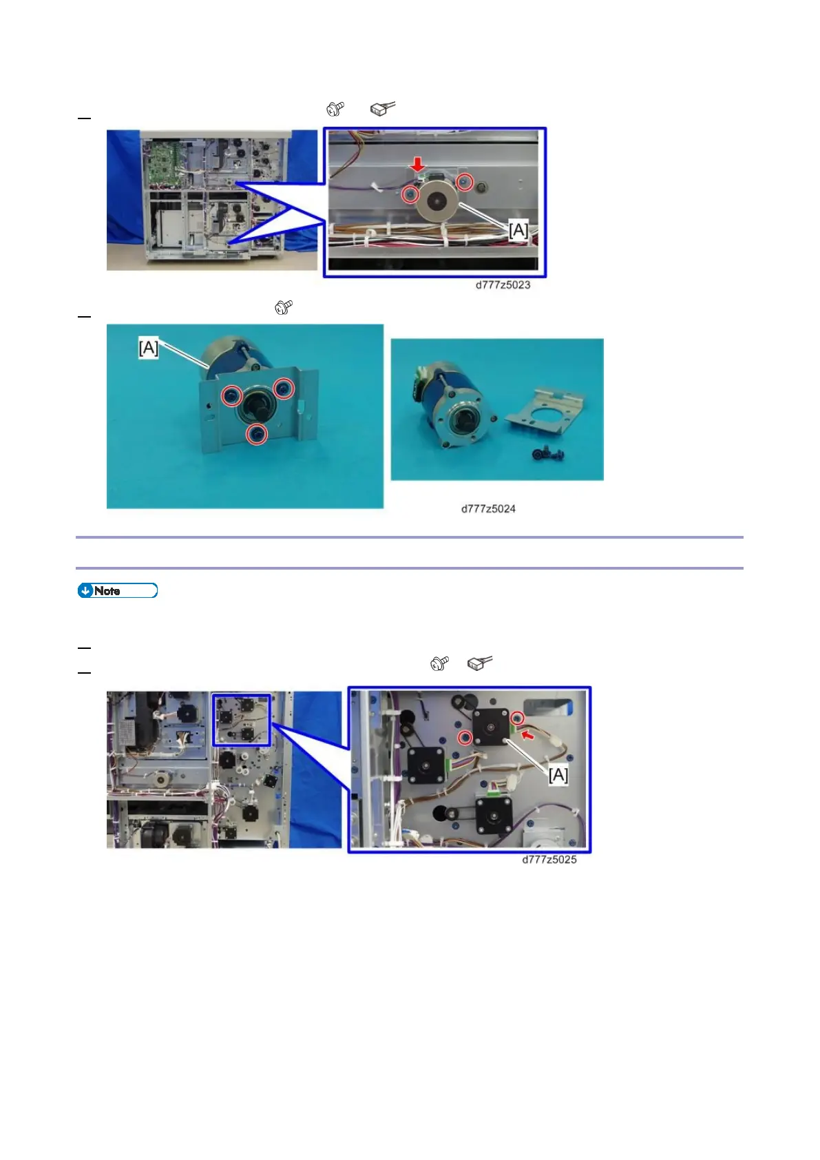 2. Remove the bypass transport motor 2 bracket [A] ( x2, x1)