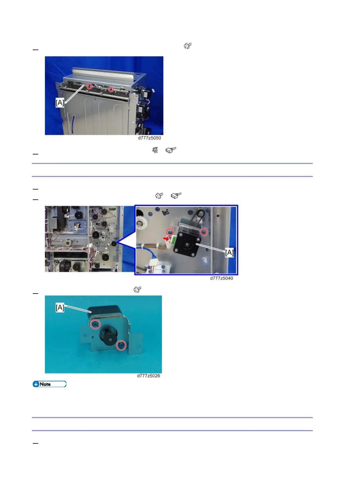 2. Remove the LCIT exit motor bracket [A] ( x2, x1)