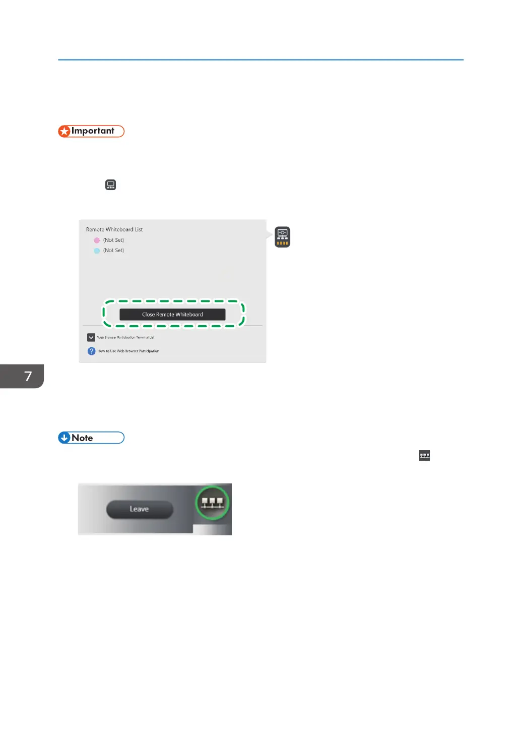 • When you finish using the Interactive Whiteboard, leave the remote whiteboard session, and then