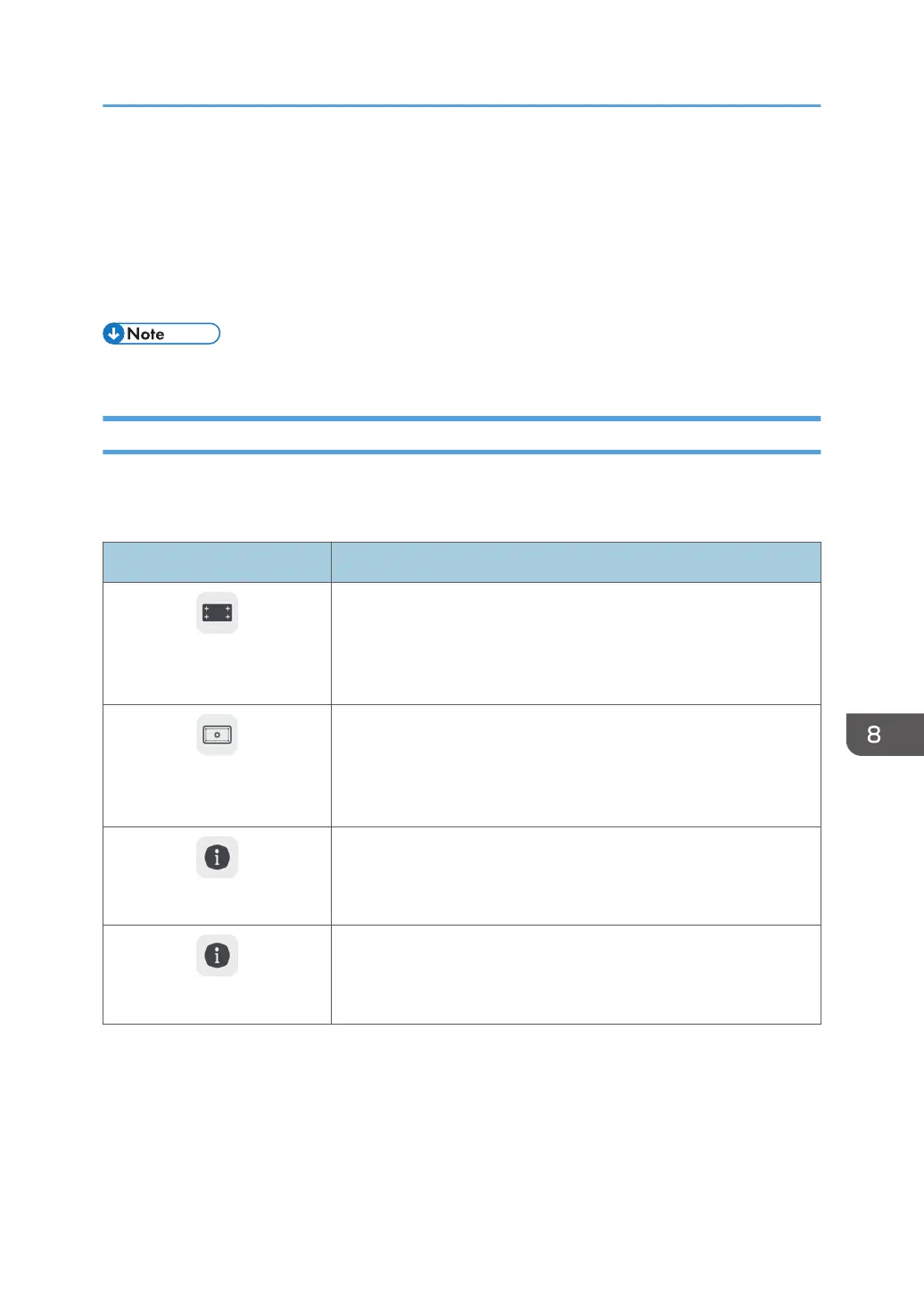 The operations performed with the activated icons are as follows: