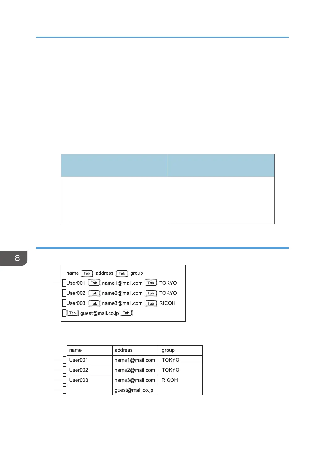 Enter the group name of the e-mail address. When you enter a group name, you can sort or filter the