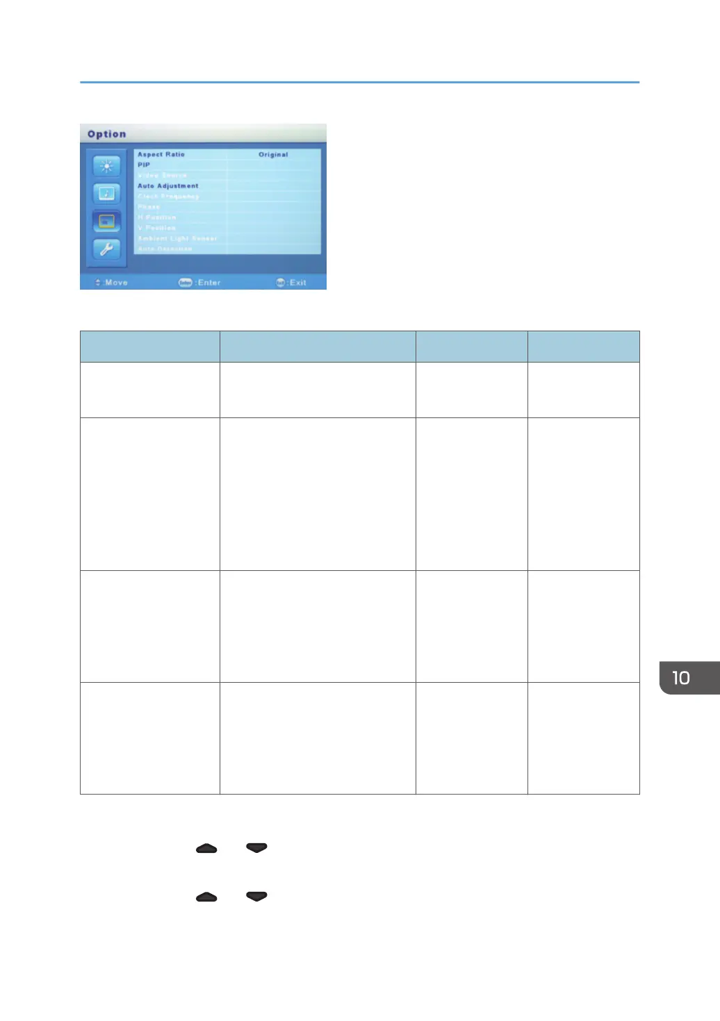 1. Press the [ ] or [ ] button, and then select "Aspect Ratio".