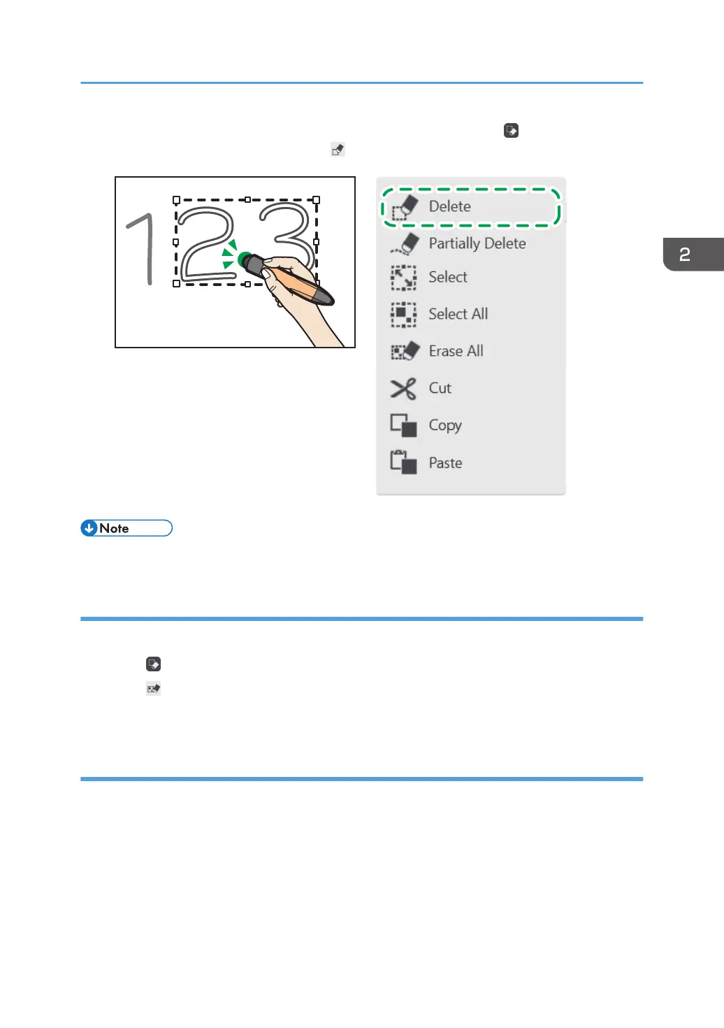 3. Touch anywhere in the selected area with the pen bottom or touch , the Select/Delete
