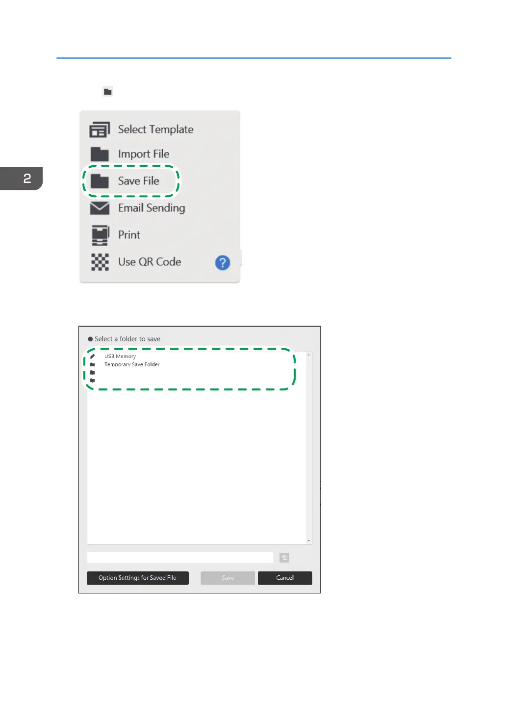 4. Specify the folder in which you want to save a file on the displayed screen.