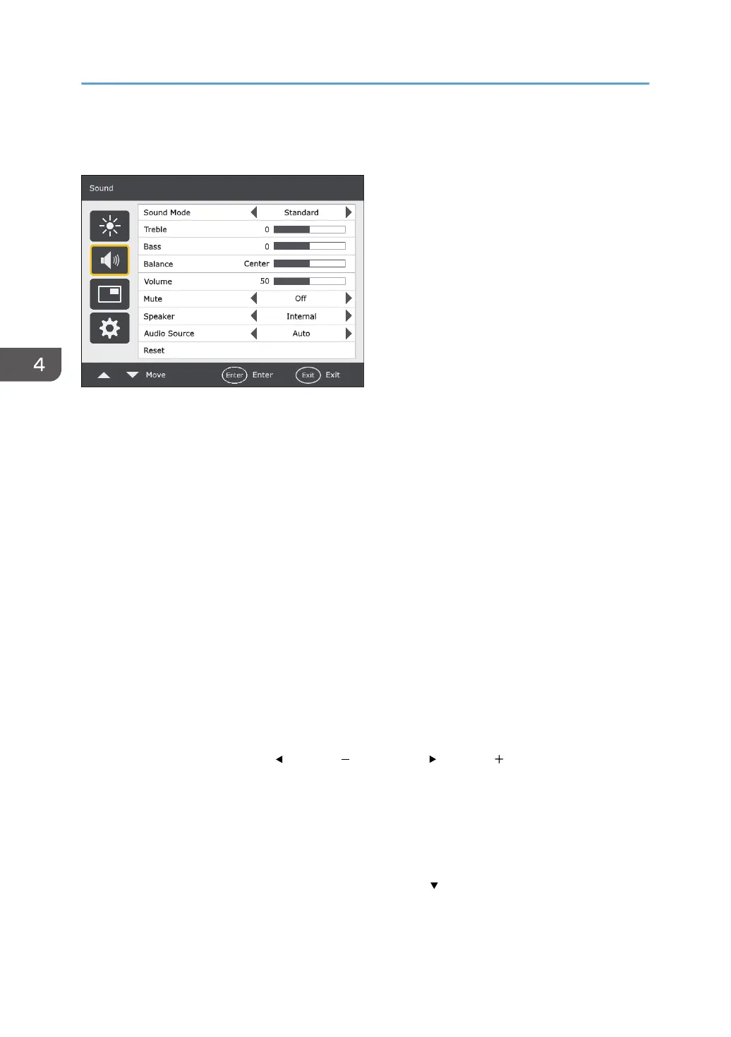 Adjusts the audio treble.