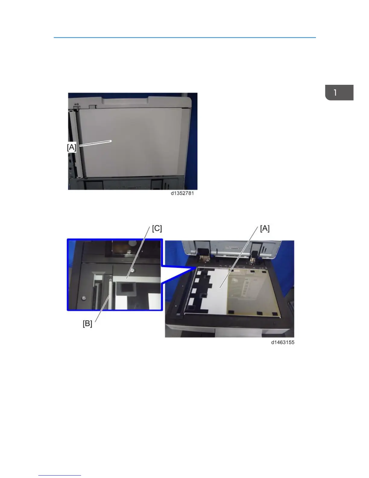 2. Put the white cover [A] in the correct position on the exposure glass, aligning it with the