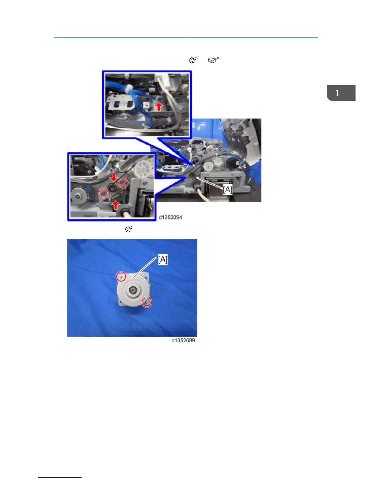4. ADF feed motor [A] along with the bracket ( ×2, ×1, spring×1, timing belt×1).