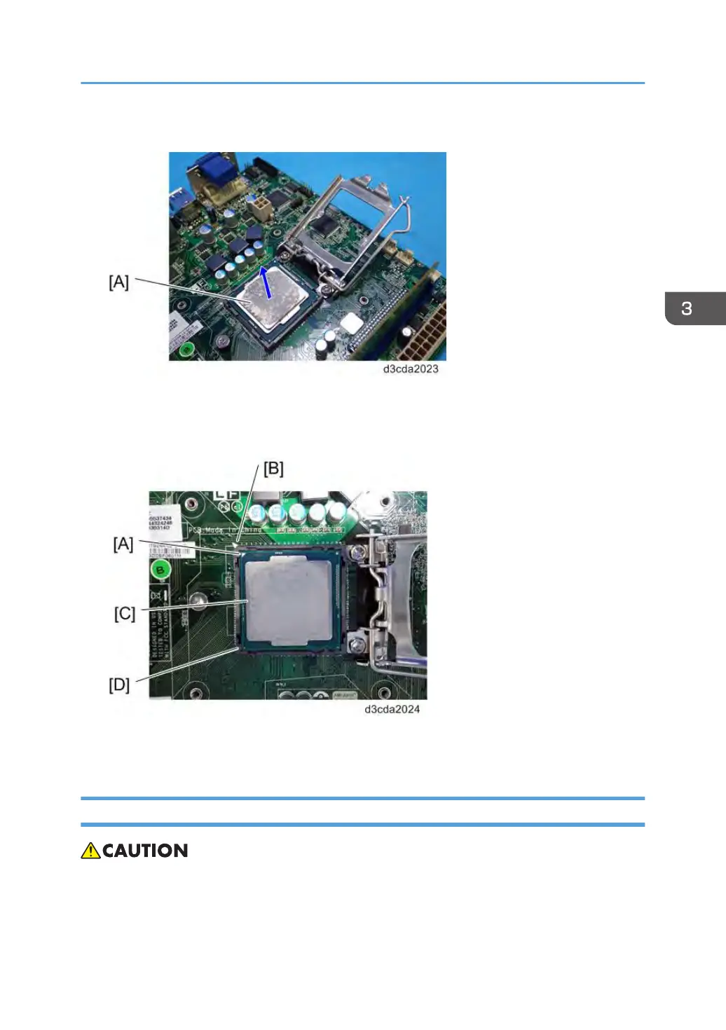 [B] when you insert the CPU into the socket [D]. (See the illustration below.)