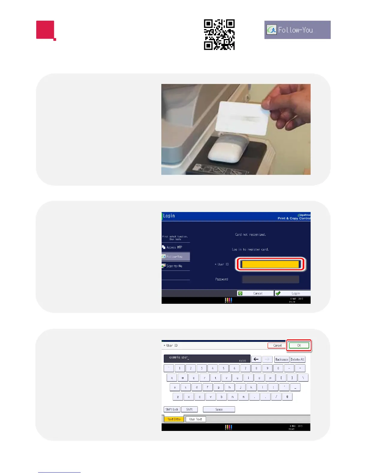 Ricoh Equitrac - Registering a Card; Initial Card Scan and User ID Entry