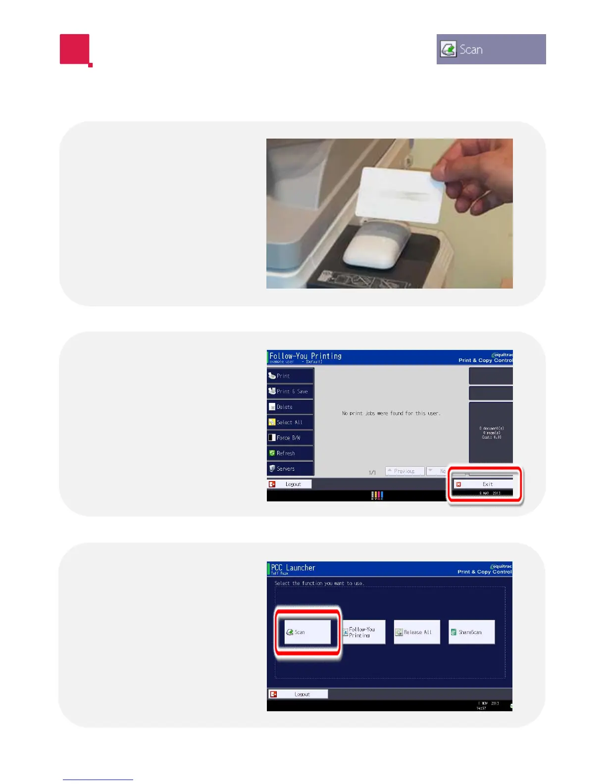 Ricoh Equitrac - Accessing Scan Functions; Login to Access Scanning; Navigating to the Scan Option