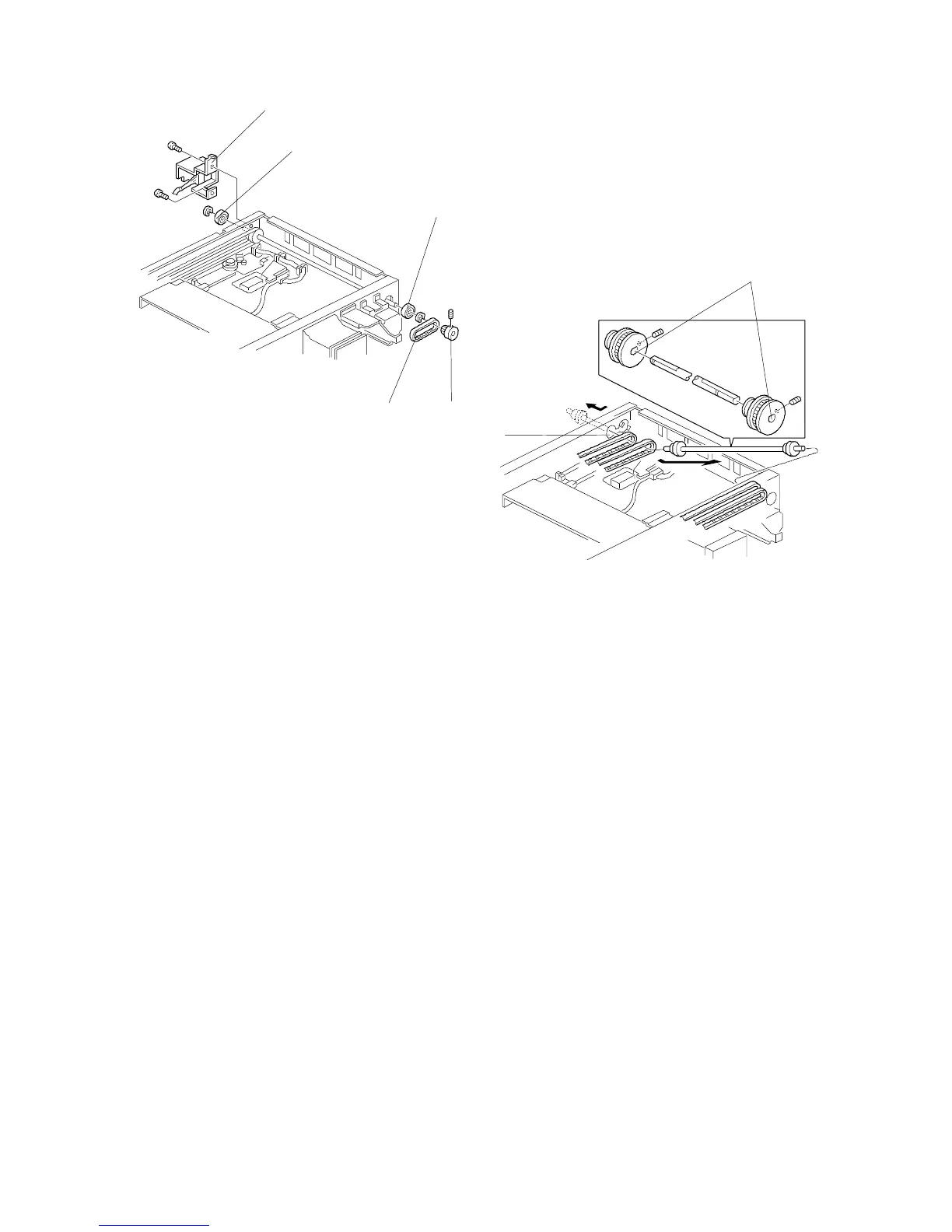 14. Slide the front pulley to the cutout [E] of the front frame and remove all four