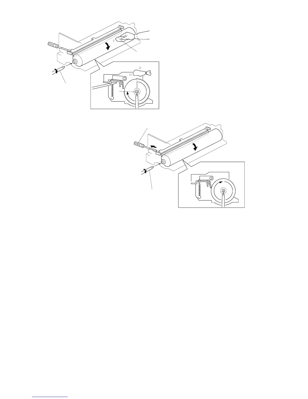 against the drum. Then rotate the drum clockwise with the screwdriver [B].