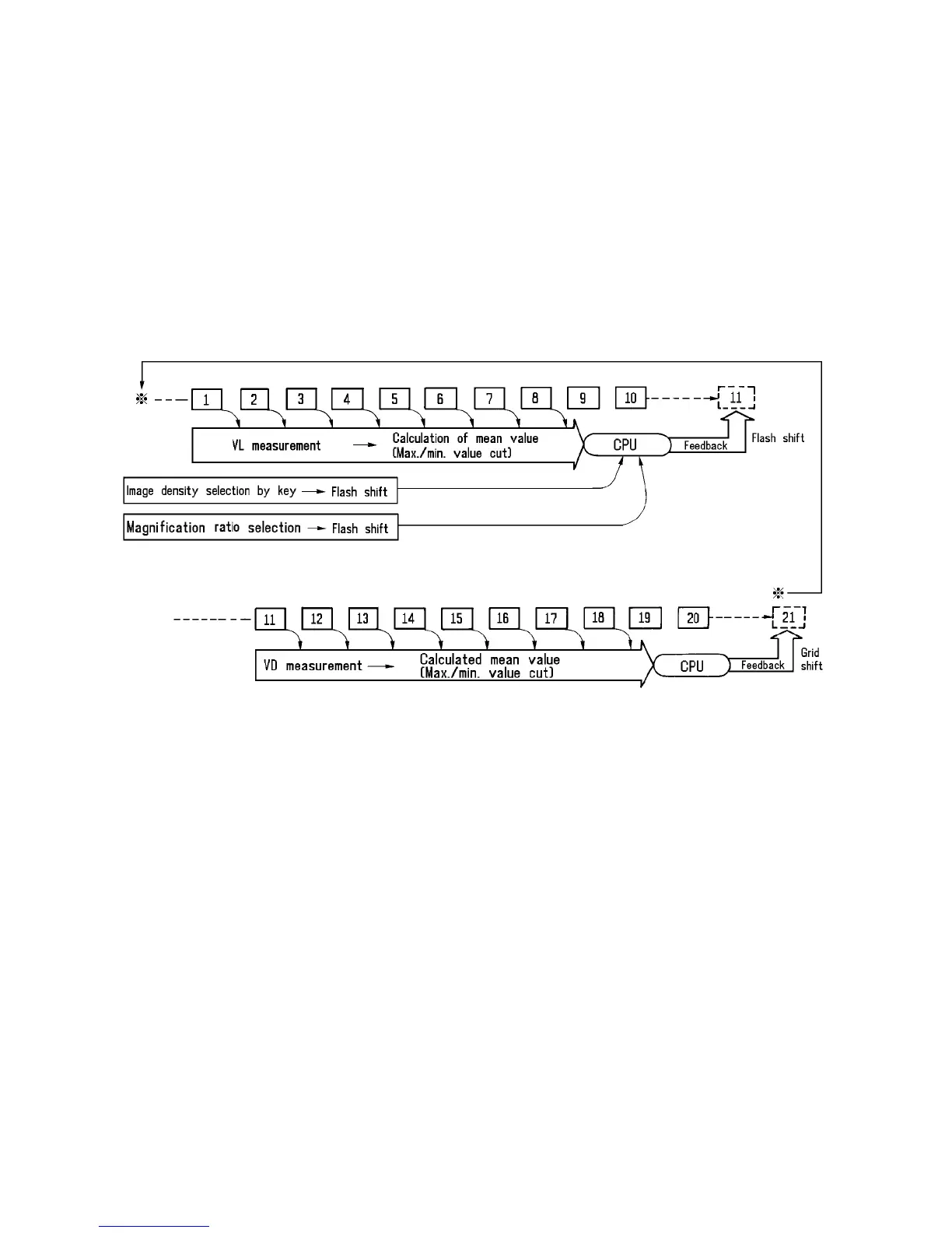 After power is turned on, from the first to eighth copies the VL is measured (8 times). The mean