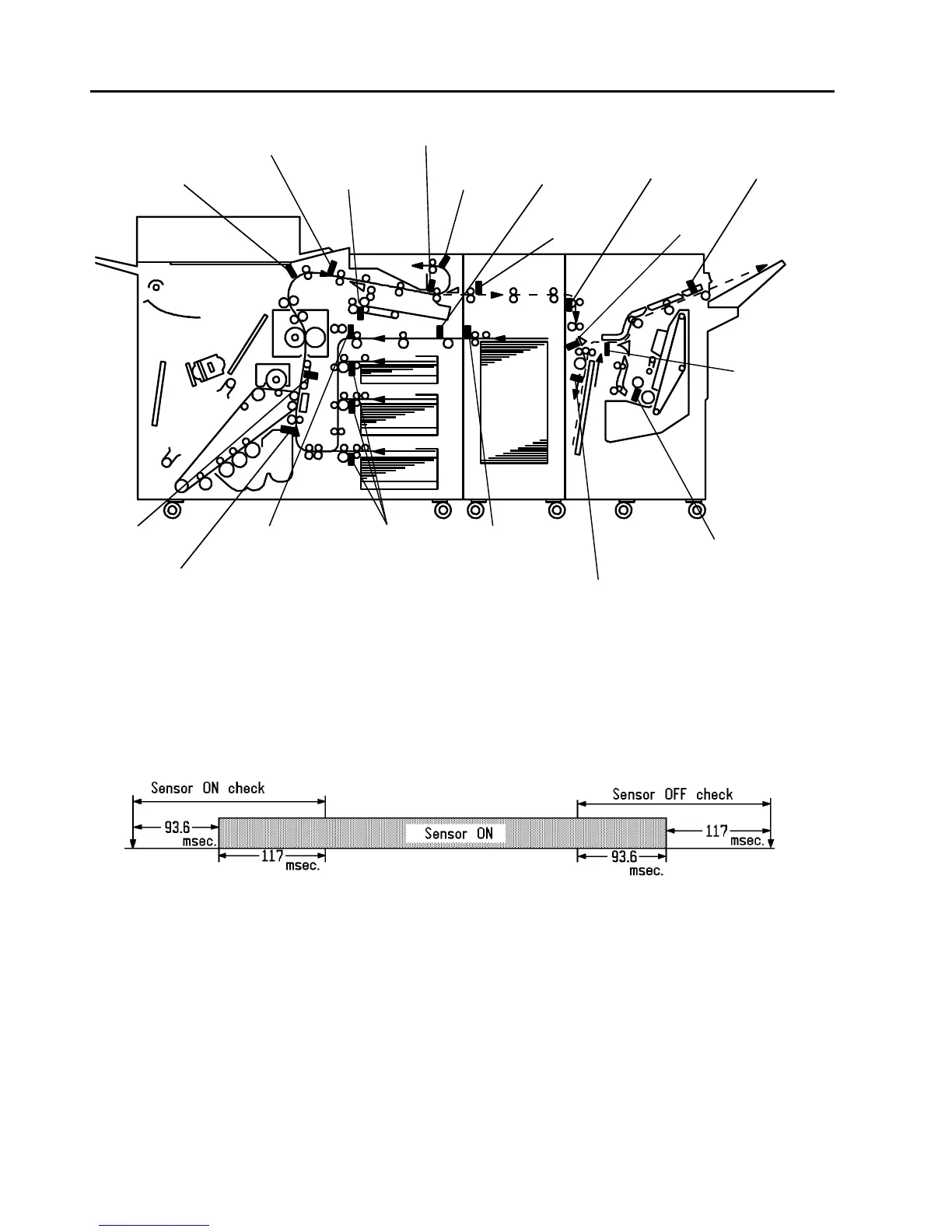 All paper path sensors on the main body perform both ON and OFF checks. For both the ON and OFF