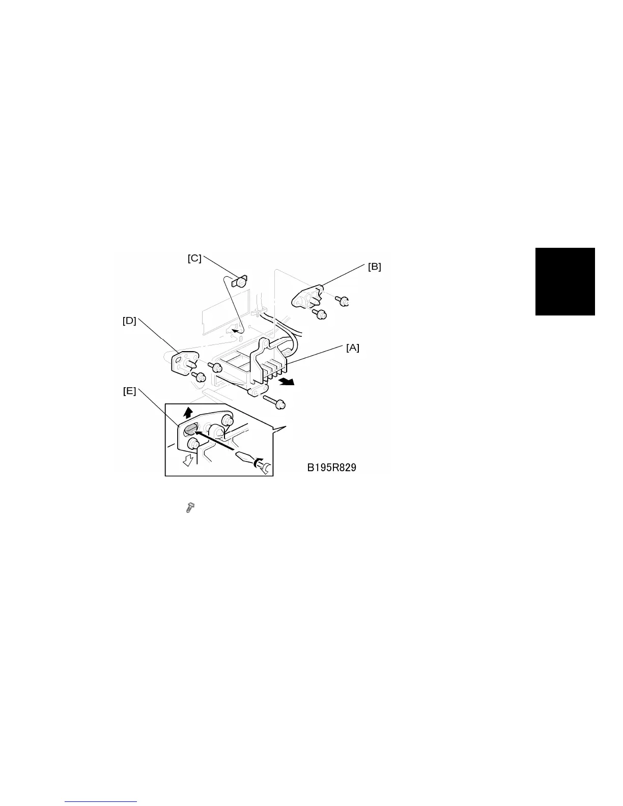bracket [B]. Do not tighten the screws at this time.
