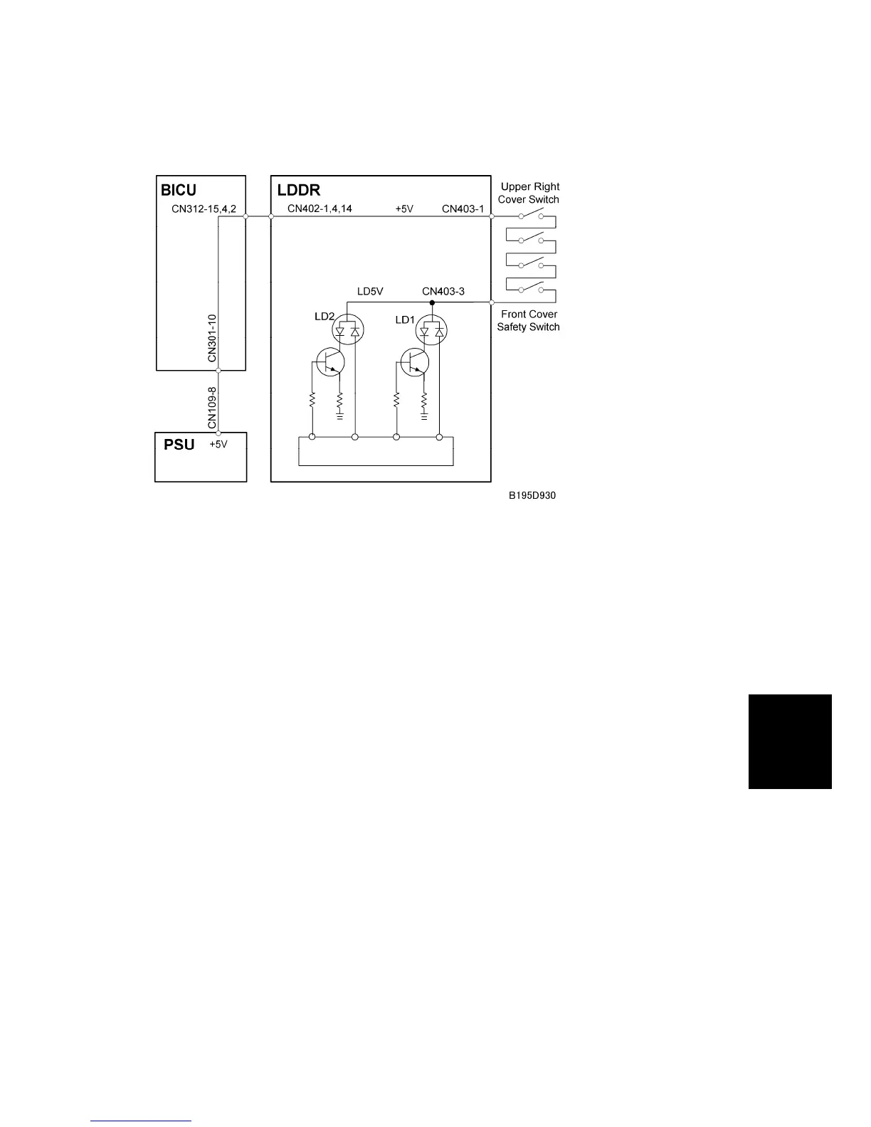 cover is opened. Four safety switches are installed in series on the LD5 V line from the