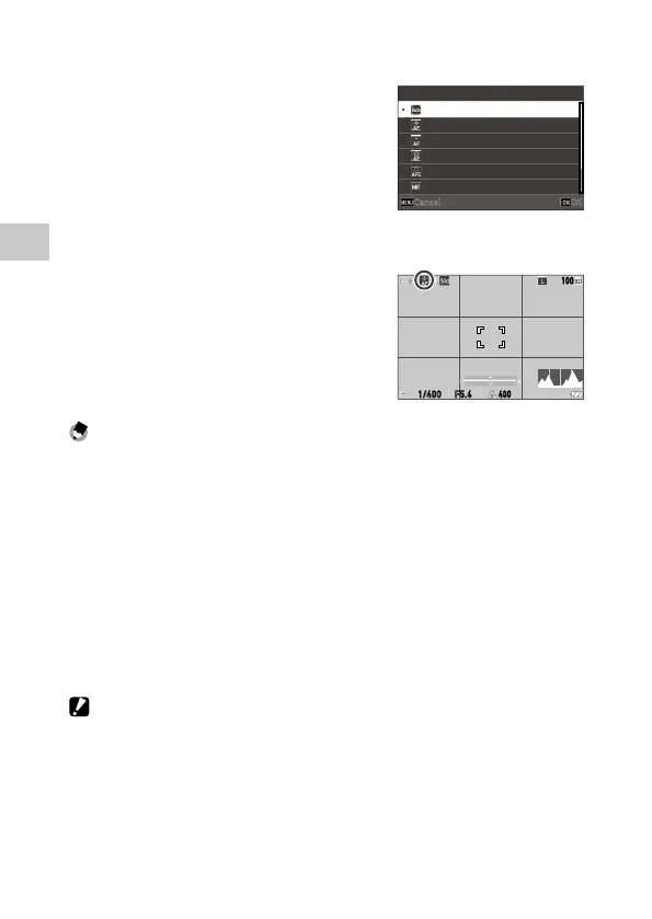 If [Set MF], [Set Snap], or [Set Tracking AF] is set to [Fn Button Setting], the focus modes can be